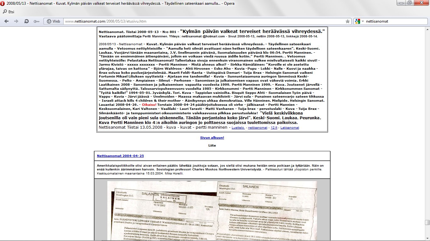 päätoimittaja Pertti Manninen. Yhteys: nettisanomat @hotmail.com -