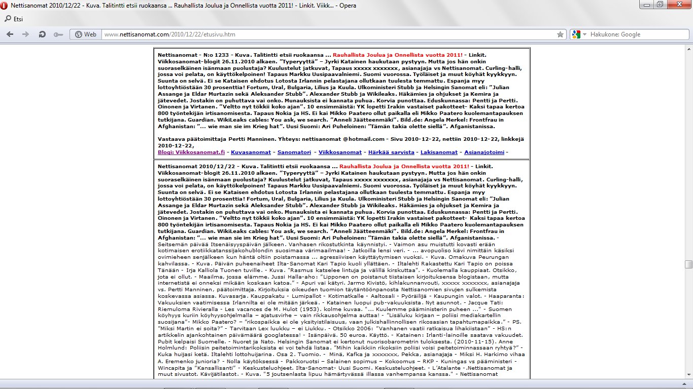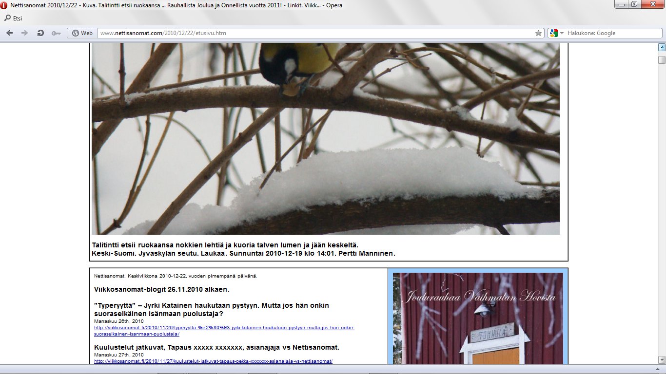 N:o 1409 - Edellinen - Seuraava - Linkki jokaiseen! - Etsi! - Yhteys - Viikkosanomat-blogi