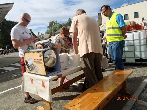 Vesanto heinäkuussa 2012. Markkinahumua aamulla ja illallakin. Koreja, pannuja ja vaatteita - Reiska-MM:n kilpailijoita tossut jaloissaan - Kalan katselua -