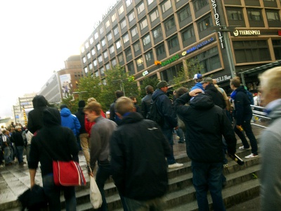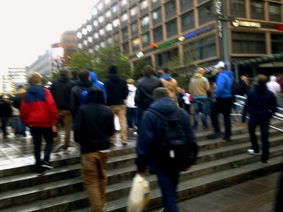 Futis Forumin marssilta Suomi- Ranska maaotteluun. Lähtötunnelmia. |
