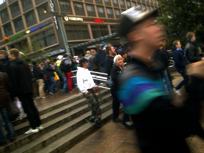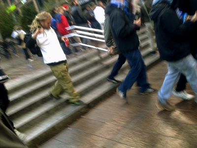 Helsinki. Mauno Koiviston aukio! Futis Forumin marssilta Suomi- Ranska maaotteluun Mannnerheimintietä pitkin. Lähtötummelmia. Perjantai 2012-09-07 19:36 ja 19:38. Kuvat: Pertti Manninen. |