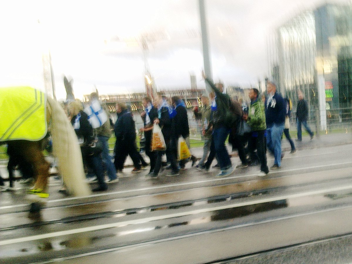 Futis Forumin marssilta Suomi- Ranska maaotteluun. Lähtötunnelmia. |