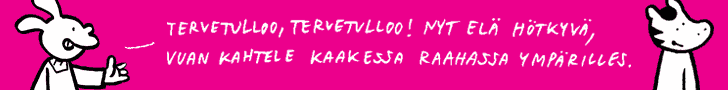 Kun Vainion liikenteen valkoinen Volvo kaartaa ulos Kampin kauppakeskuksen kellarista, valo humahtaa ikkunoista läpi. Tammikuun keskipäivä näyttää keväältä. Bussissa se tuntuu erityisen kirkkaalta, bussissa ollaan paljon korkeammalla kuin muut. Pitkänmatkan linjuri Turkuun on puoliksi täynnä maakuntamatkailijoita, joiden kantamukset kuski on latonut tavaratilaan. Meillä ei ole laukkuja, meillä on housut, joissa on löysät vyötärönauhat. Ettei puristaisi. Istuimet näyttävät siltä kuin ne olisi verhoiltu kuvaamataidonopettajien vaatteilla. Keskisiniseen kankaaseen on roiskittu erivärisiä, pirtsakoita neliöitä. Toinen meistä asettuu bussin keskiosaan käytäväpaikalle, toinen takapenkille ikkunan viereen. ”Tervetuloa pikavuorolle Turkuun. Matkan aikana käytössänne bussin takaosassa on wc. Siellä on myös lehtiä luettavaksi matkan aikana”, lipunmyyjänainen kuuluttaa keskusradion kautta Espoon Ikean kohdalla. Tieto aiheuttaa jännitystä. Jos kaikki ajankulu on pakattu linjurin peräpäähän, kanssamatkustajat rynnivät edestakaisin käytävää koko kaksi ja puolituntisen. No ehkä he luulevat, että se on vessa, mikä haisee. Kummankaan vieressä ei sentään istu ketään. Vaikka katsotaan nyt, tuleeko tästä edes mitään. Ei ole yhtään kakkahätä, mutta jotain tässä nyt pitäisi housuun vääntää. Kasaamme molemmat lehtiä etutarjottimelle. Yleensä auttaa, jos ajattelee jotain muuta eikä keskity itse suoritukseen. Lukeminen ei oikein onnistu. Bussi keinuttaa huomaamattomasti ja hiljaa, mutta sen verran, että tekstiä tihrustaessa tulee paha olo. Tekstiviesti keskipenkille: SAUKKOLAN jälkeen lipunmyyjä pysähtyy jutustelemaan juuri kyytiin nousseen matkustajan kanssa. Naisella on lila, hapsuista tehty kaulaliina. He puhuvat joulusta. Kiireestä. Keskipenkin takana oleva nainen imeskelee äänekkäästi pastillia. Samalla toinen meistä pinnistää pökälettä farkkulegginseihin. VK: Mä ponnistan ja pidätän samalla. En tiennyt, että se on mahdollista. Menee tunti, mutta mitään ei tapahdu. Tämä on yllättävän vaikeaa. Tuntuu jotenkin oudolta, kun on housut jalassa. Täytyy yrittää voimalla. Penkin ja takapuolen välissä on sen verran vähän tilaa, että on siirrettävä paino pelkästään toiselle pakaralle. Asento on huono. Edessä olevan penkin selkänoja puristuu nyrkkien väliin, veri pakkautuu päähän. Kun bussi pysähtyy 110-tien varressa Suomusjärven kohdalla, tuntuu jo että ohimo repeää. Toisella puolella tietä tyttö istuu pysäkillä ja tuijottaa. Terve vaan. Naama väännöksissä ei paljon huvita seurata muiden matkustajien ilmeitä, mutta todennäköisesti etupenkiltä vessaan Kings-pipo päässä toikkaroiva poika ajattelee, että väännämme hysteeristä itkua. Ja sitten vihdoin. AR: AHAHAHAHAHAHAHAHAHH EI VITTU, KAKKASIN HOUSUUN! TÄÄ OLI PARAS IDEA MAAILMASSA AHAHAHAHAHAHH! Kymmenen minuutin päästä: AJATUS omassa paskassaan istumisesta on paljon pahempi kuin varsinainen istuminen. Sulanut ruoka ei kirvele, ei polta eikä ole erityisen märkää. Pissaakaan ei tullut juuri ollenkaan. VK: Tai ehkä vähäsen, vaikee sanoo. Bussin etuosassa joku lukee iltapäivälehteä ja joku toinen raapii korvaansa. Pastillinainen katselee ulos ikkunasta. Kukaan ei epäile mitään. Kenenkään matkaa ei haittaa ollenkaan, että kakkasimme juuri housuun. Kaikilla menee mukavasti, Turkuun menossa, viikonloppu vasta alussa. Tekisi mieli kertoa. Kings-pipoinen poika, arvaa mitä! On sellainen olo, että pystyy tekemään mitä tahansa. Selviää mistä tahansa. Emme edes huomaa, että aurinko on mennyt pilveen jo Saukkolassa. BUSSI ajaa Halikon läpi ja kakkaamme yhteistuumin vähän lisää. Pikkuhiljaa söhjö liiskautuu kiinni ihoon. Tuntuu kuin olisi jotain geelin tapaista persvaossa. Kun nousee penkistä, kakka ei irtoa pakaroista. Bussien heilunta kiinnittää sen niihin entistä tiukemmin. AR: Siis hyi helvetti. Mä istun sen päällä. Saakohan tästä jonkun tulehduksen? Taas pysähdytään. Nyt tien varressa näkyy huoltoasemakompleksi. Lipunmyyjä on sanonut alkuspiikissä, että pysähdyksiä tehdään tarpeiden ja toiveiden mukaan. Iskee pieni paniikki. AR: Kiva mennä pyörimään jonnekin tehtaanmyymälään paskat housussa. Ei tule. Välillä haistaa jotain, mutta suurimman osan ajasta ei. On kyllä todennäköistä, että oma nenä turtuu paljon ennen muiden neniä. Tehtaanmyymälä ohitetaan pysähtymättä. Jatkamme istumista. Kaarinassa alkaa sataa lunta. Kun nousee hetkeksi ylös ja istuu takaisin alas, ällöttää vähän. Kakkalevy leviää joka kilometrillä laajemmaksi. Tunturi Center, Biltema, Tarjoustalo, harmaata, harmaata, harmaata. Oltaisiinko jo pikkuhiljaa perillä? Alkaa jo vähän tuskastuttaa. ”Saavumme Turkuun”, kuljettaja huokaa mikrofoniin. Minnehän se lippunainen on mennyt kesken kaiken? Ihan sama. Kuikuilemme kärkkäästi esikaupunkimaisemaa. ”Pysähdymme tarvittaessa kaikilla pikavuoropysäkeillä ennen linja-autoasemaa.” Ei saatana. Kakka ei tunnu enää geeliltä vaan kylmältä limalta. Hajun haistaa koko ajan paremmin. Jos nyt kerran pystyy mihin tahansa, oliko pakko valita juuri tämä? Housujen takapuolelle muodostuu märkä läikkä. VK: Me joudutaan varmaan ostamaan tää koko bussi. Hesejä alkaa näkyä yhä useammin. Suojeltu funkkistyylinen linjaautoasema ilmestyy näköpiiriin tasan aikataulussa. Kuski toivottaa tervetulleeksi uudelleen ja pysäköi Volvon sadan metrin päähän asemasta. Ryysäämme ulos kuminauhat tiukkoina, samalla kun muille ojennellaan matkatavaroita leveällä murteella. Tuntuu vähän absurdilta, mutta kun pääsee ulos, ei olekaan kauhea kiire. Kävelemme ihan mielellämme. Ei ole mitään pidäteltävää. Teksti: Vappu Kaarenoja ja Aurora Rämö Muuta kiinnostavaa: http://ylioppilaslehti.fi/2013/02/yl-raportti-paskoimme-housuun-bussissa-turkuun/ |