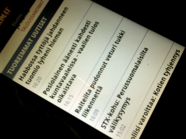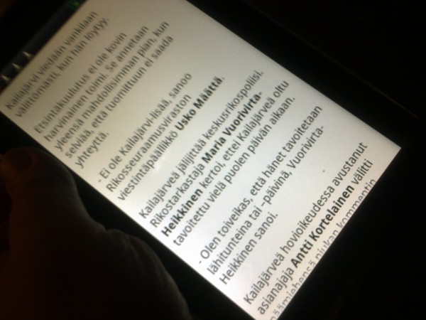 Nettisanomat 2013/02/19 - Kuva. Maailmassa monta on ihmeellistä asiaa. Kuva. Vanhojen tanssit. Juvan lyseo - Erkki Laatikainen 1946-2013 - Ambulanssi kiitää Laukaan maneesin sortumapaikalle (22 sek) ja palaa takaisin kohti Keski-Suomen keskussairaalaa (23 sek). Tiistai 12.02.2013 - Penkkariajelut Jyväskylän Vapaudenkadulla (1 min 33 sek ja 44 sek). Torstai 14.02.2013 - Arktisen upeeta- elokuvafestivaali Jyväskylässä. PV Lehtinen kertoo elokuvistaan Kampus-Kinossa (47 sek). Paul-Andres Simma kertoo elokuvistaan Keski-Suomen museon auditoriossa haastattelijanaan Petteri Kalliomäki ja Koiranelämää-elokuvan alkua (17 min 26 sek). - Suomen EU-lasku & EU-johtajat puhuvati & EU-lisämaksusta syntyi ilmiriita & Stubb puolustaa EU-maksusopua. - WINCAPITA. Kailajärvelle 5 vuotta hovissa, heti vankilaan! - YL Raportti: Paskoimme housuun bussissa Turkuun - Ylioppilaslehti - Kuvat. Vapaudenkadulla, kahdessa kulmassa. - Keskisuomalainen: Lukioverkkoratkaisu: Jyväskylä aikoo myydä Lyseon. - Helmikuun 6. Saamelaisten kansallispäivä. - LYSEO LIHOIKSI! Jyväskylä. - Toiset kahdeksan kuvaa -- BISQUIT Himphamppua: "Kummola ei käyttänyt kannabista!" Ilta-Sanomat - Vaalirahoitus: Maan tapa. Pääkirjoitus. - Sallitun raja - Katkelma HS;n pääkirjoituksesta - Jarno Liskin lyhyt haastattelu, 7 sek. - Case Nettisanomat - Kuva: Houkuttelua häämessuille. - Kuva. Sihti. Firmamessut 2013 - Kuva. Kaupungin valot - Kokoelmasta RAKASTA. Aforismeja, runoja ja mietteitä vuoden jokaiselle kuukaudelle. Toimittanut Arto Manninen. Gummerus 2012. Helmikuu. - Kuva. Lumetta lumessa. - Kuva. Käden ojennus. Karuselli. - etusivu - Tiistai 19.02.2013 - Nettisanomat - Sanomanetti - Blogi: Viikkosanomat.fi - Kuvasanomat - Sanomatori - Viikkosanomat - Härkää sarvista - 12.fi - Sanomalehtimies Erkki Laatikainen 6.8.1946-15.2.2013 - muistokirjoitus, Lasse Kangas |