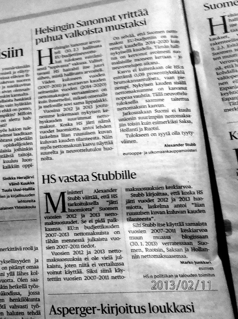 Helsingin Sanomat 10.02.2013 ja 11.02.2013.