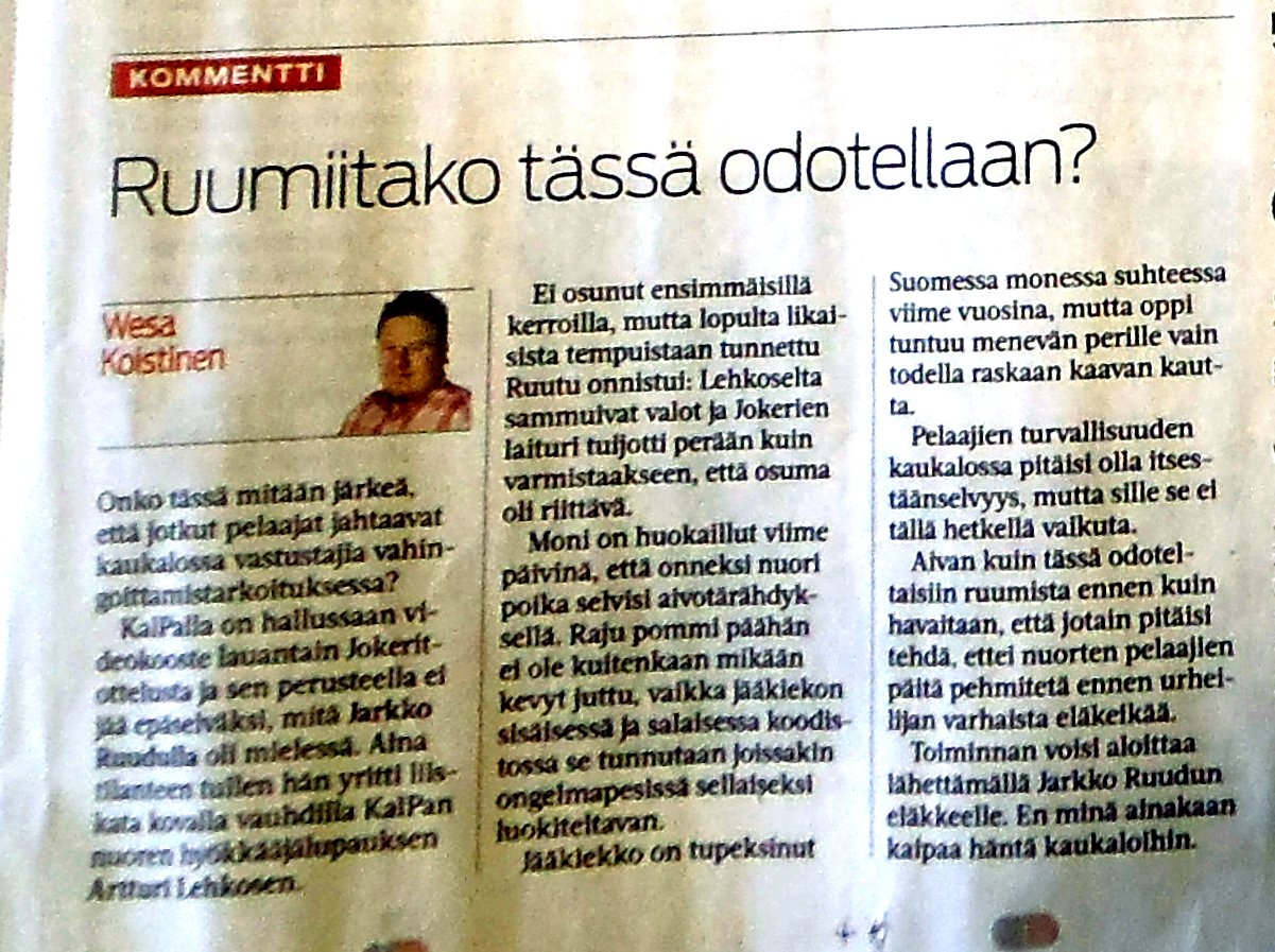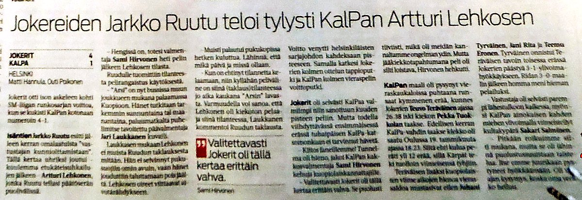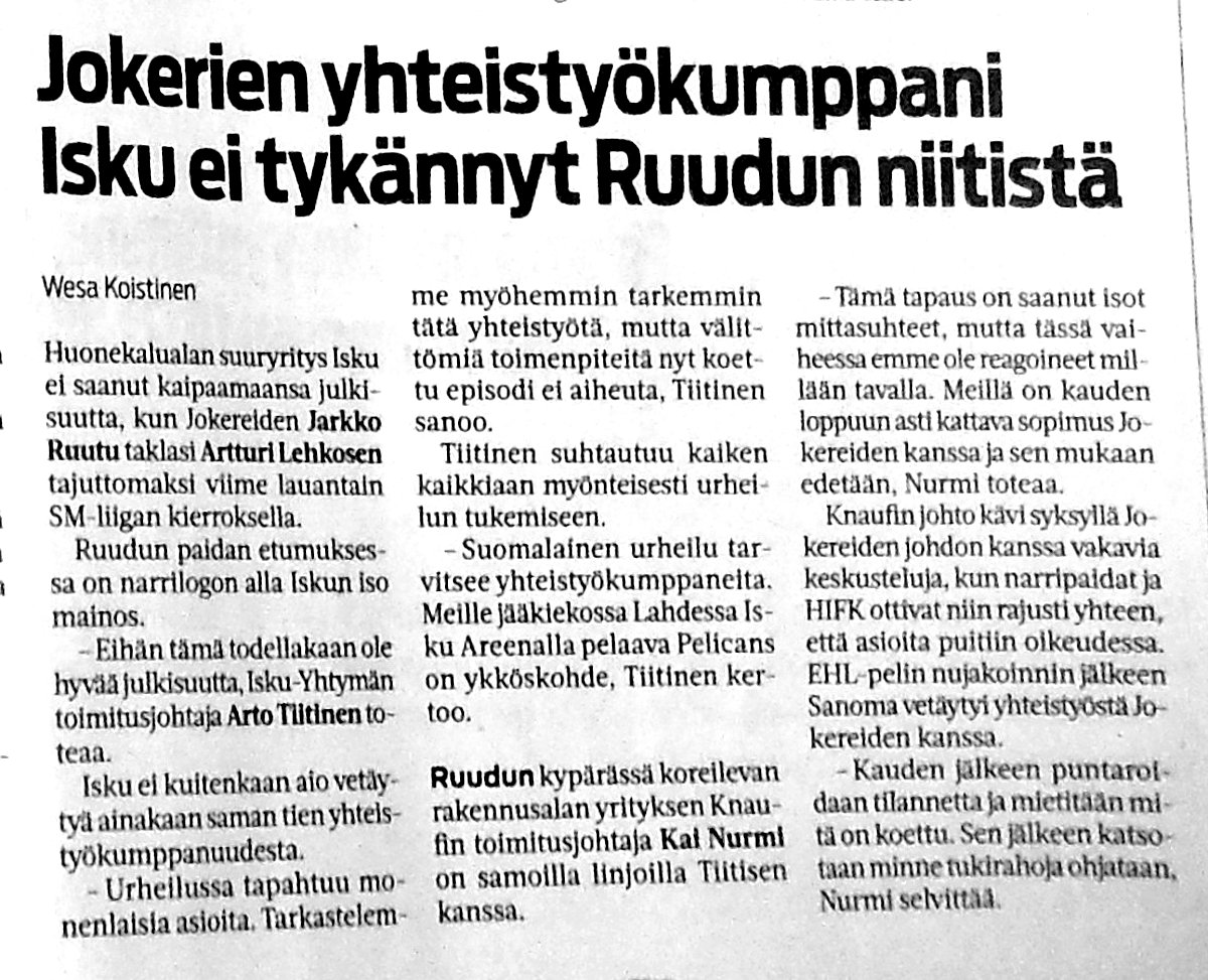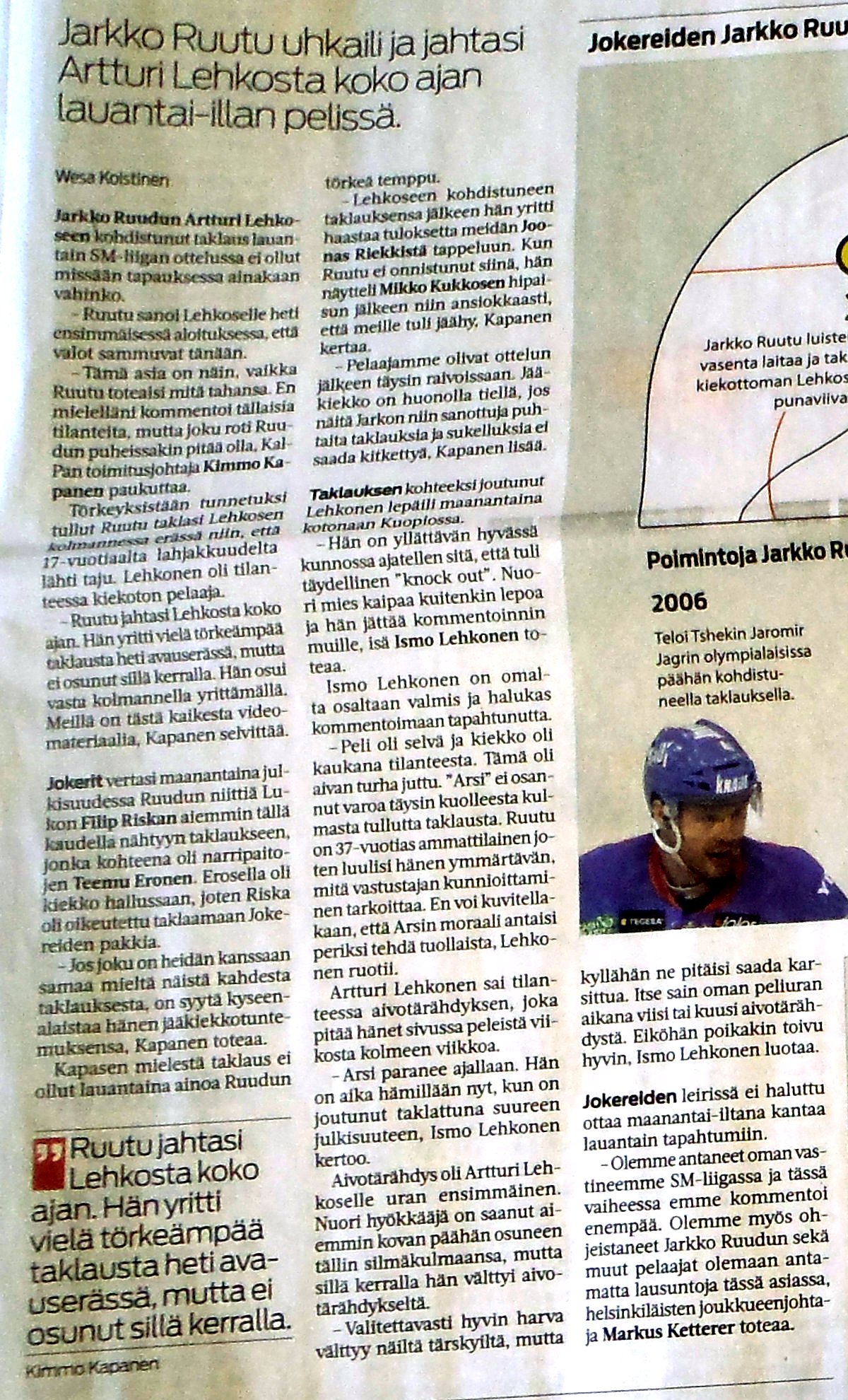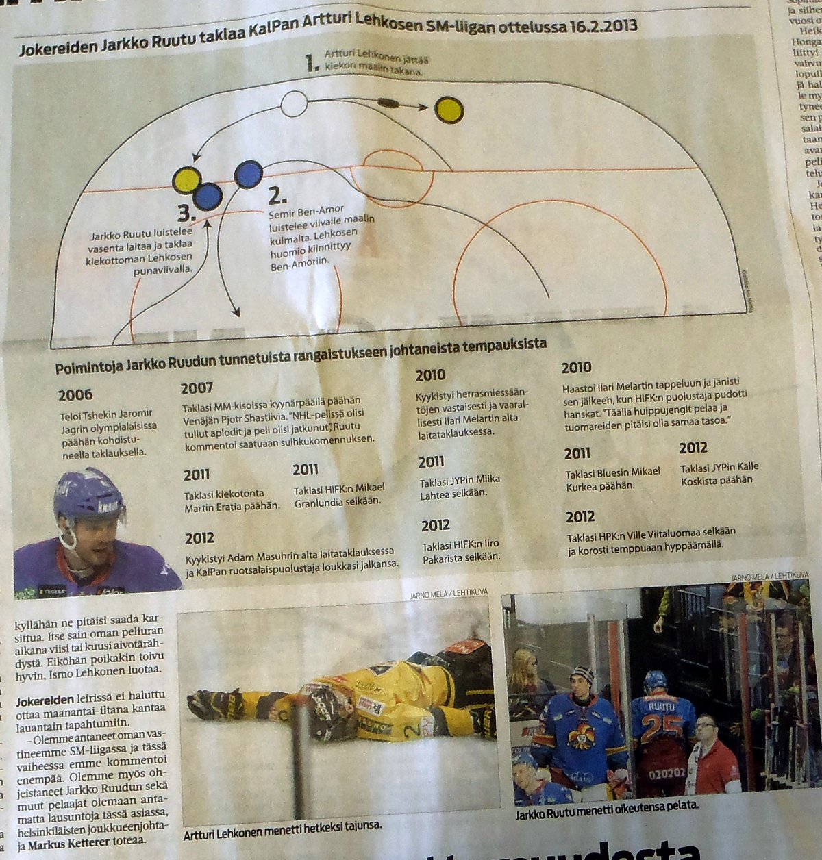 2013 Helmikuu. Urheilu.Harry Harkimon Jokerien Jarkko Ruutu teloo ...