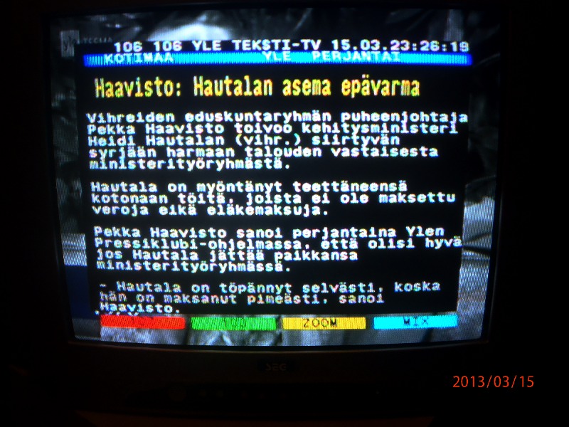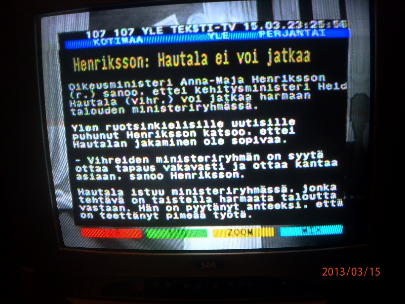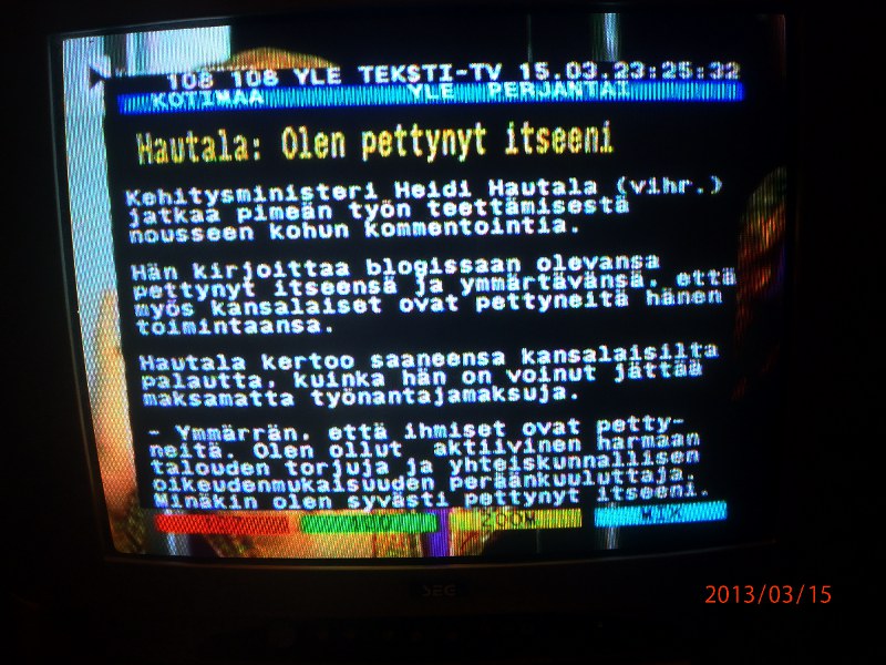 2013 Maaliskuu. Perjantain ja lauantain välisenä yönä 1.Ylen teksti-tv: Hautala: Olen pettynyt itseeni - Henriksson: Hautala ei voi jatkaa - Haavisto: Hautalan asema epävarma. |