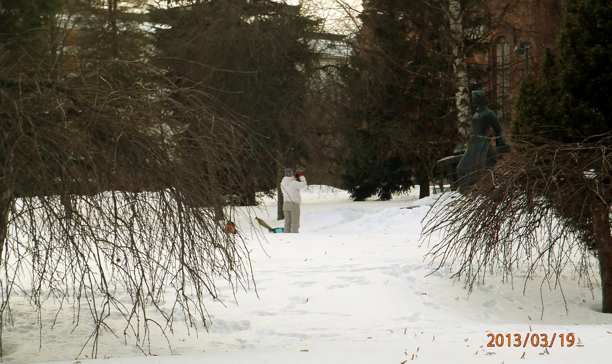 "Minnan kuvaus". Jyväskylä. Kirkkopuisto, Vapaudenkatu. Tiistai 2013-03-19 16:45. Kuva: Pertti Manninen. |