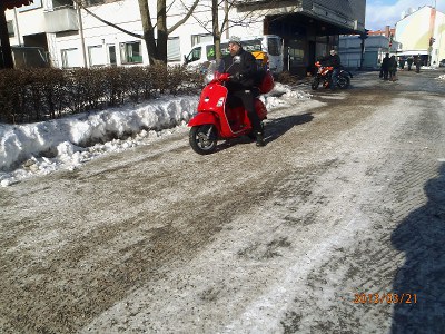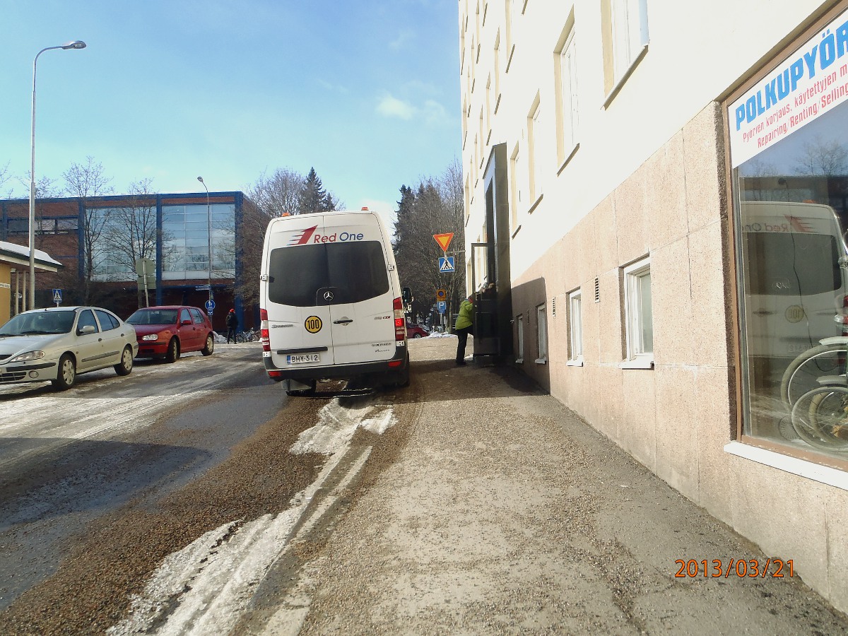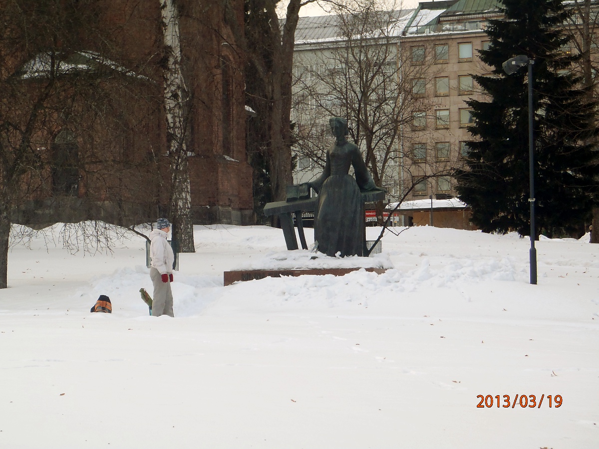 "Minna odottaa ruusun tuojaa lumeen hautautuneena". Jyväskylä. Vapaudenkatu. Tiistai 2013-03-19 16:45. Kuva: Pertti Manninen. |