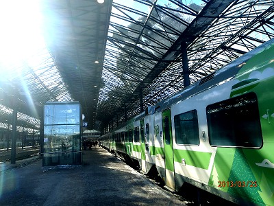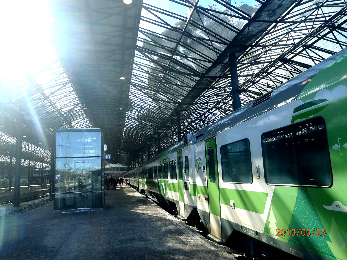 "3 kuvaa. Pitkä laituri - Kevätodotus - Väsähtynyt". Helsinki. Keskusrautatieasema. Maanantai 2013-03-25 10:47 ja 10:48. Kuvat Pertti Manninen. Isonna! |