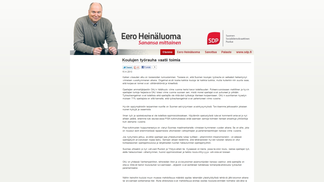Opettajat ansaitsevat täyden tuen ja lisää työkaluja koulujen työrauhan parantamiseen. Helsingin kaupungin päätös opettaja Korhosen työsuhteen purkamisesta vaikuttaa laittomalta ja tulisikin mahdollisimman pian peruuttaa, toteaa eduskunnan puhemies Eero Heinäluoma nettikolumnissaan.