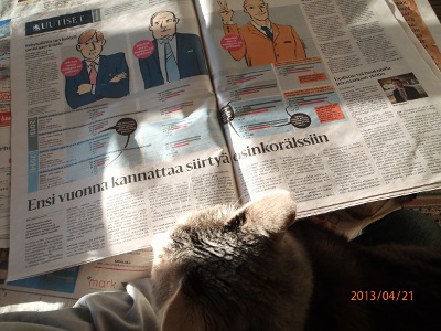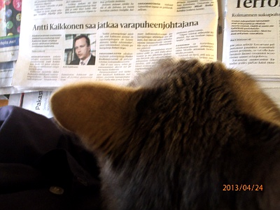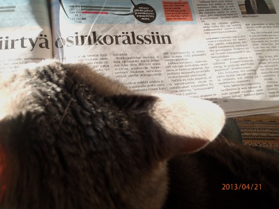 2013 Huhtikuu. Kissan kellot pakollisiksi taajama-alueille.Hallituksen budjettiriihessä monet asiat jätettiin tiedottamatta kunnollisesti. Yksi pienimmistä päätöksistä on esimerkiksi, se, että valtion kassaan aiotaan kerätä uudenlaista kissaveroa, jonka vuosituotoksi on ajateltu 2 miljoonaa euroa. Rasmus raitilla. Sunnuntai 2013-03-31 13:35. Kuva: Pertti Manninen. |