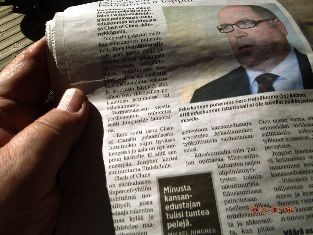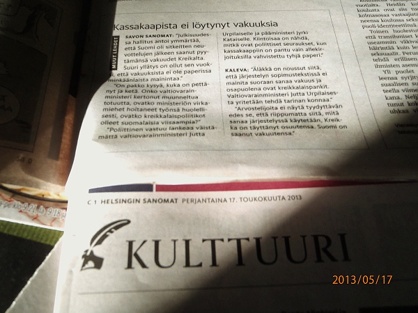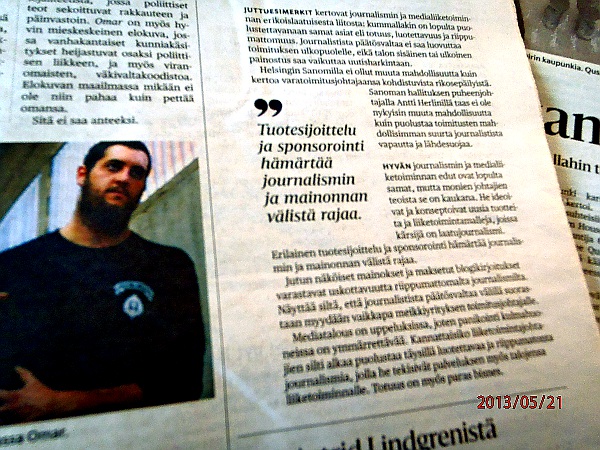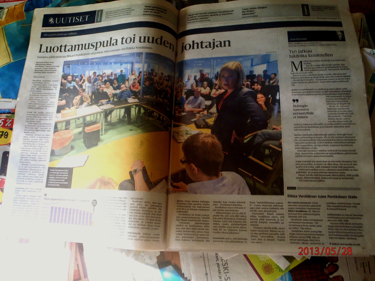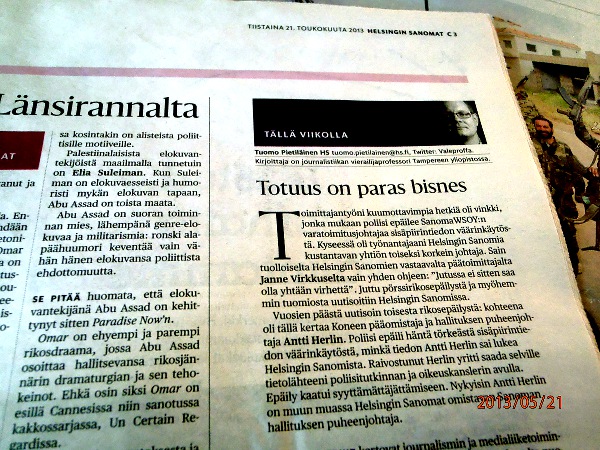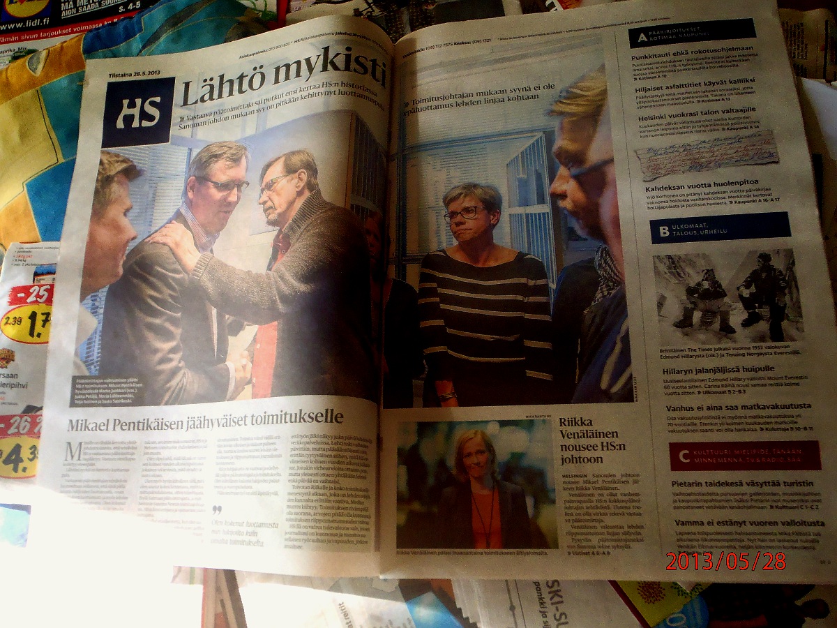 lukemaan siitä ensimmäiseksi Helsingin Sanomien etusivulta”.