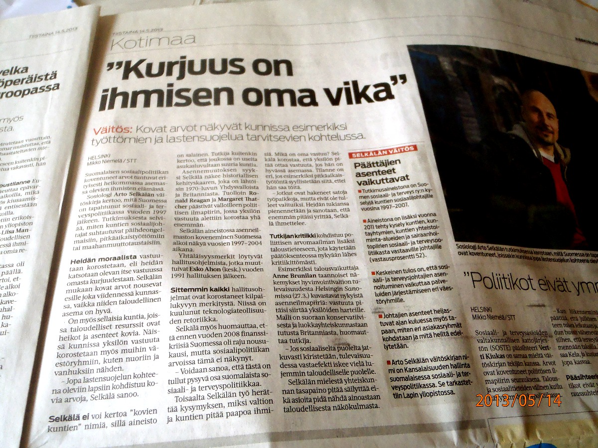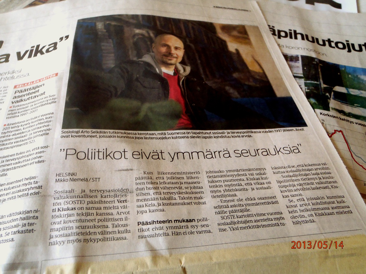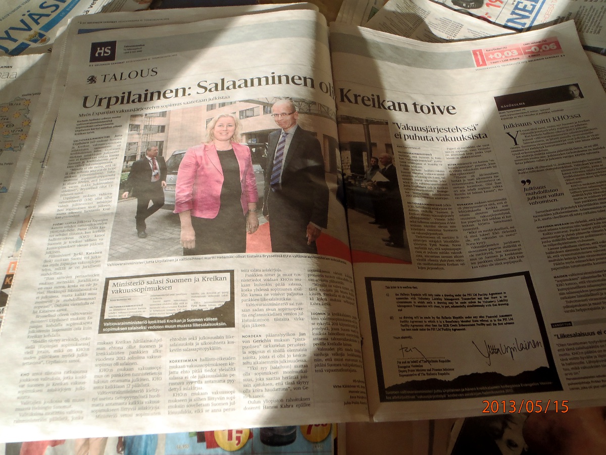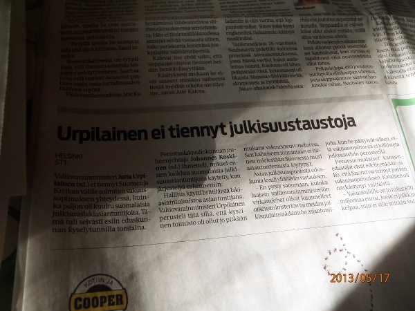 lukemaan siitä ensimmäiseksi Helsingin Sanomien etusivulta”.