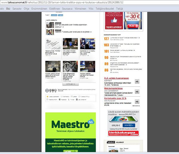 ensimmäiseksi Helsingin Sanomien etusivulta, Kotiranta selvitti.