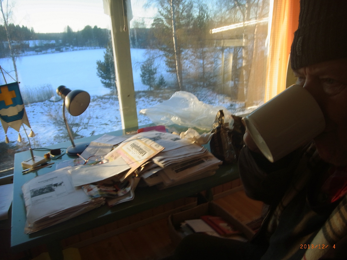 Varastolta vähän kerrallaan hakemani laatikot olen saanut purkaa pitkin syksyä pienessä kesämökissä Peurunka-järven rannalla. Kun mökissä on nyt vain peruslämpö päällä, niin aluksi joudun työskentelemään takki päällä ja siemailemaan kuumaa kahvia vähän väliä. Kirkkonummi-viirikin muistuttaa siellä asumistani ajoista ja nyt tässä uudessa satsissa oli monta laatikkoa niitä 80-luvun asioita, niin kokouspöytäkirjoja ja paikallislehtiä, joista nopealla silmäyksellä löysin lisää siihen KIRKUVA-elokuvakerhon historiaan ja poliitikon uraanikin. Keskiviikko 2013-12-04 Pertti Manninen. |