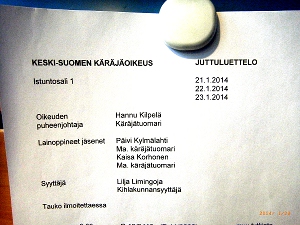 Tammikuu 2014. Wincapita-rikoshyötykäräjät. Keski-Suomi 21.1.2014 - Isonna!Oikeustalo. |