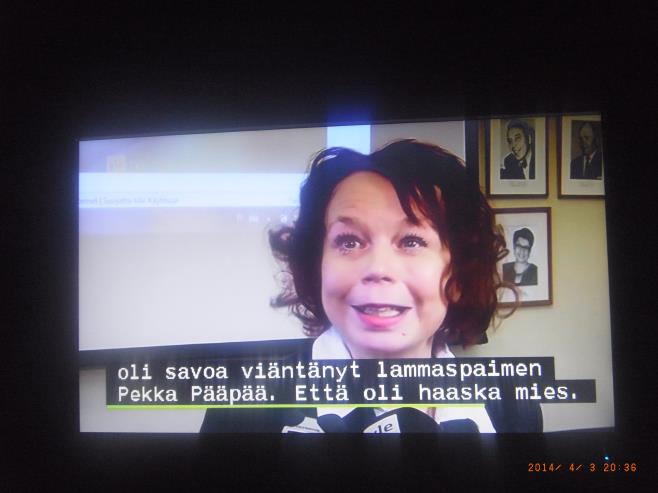 Kuvat Yle tv1:n uutisista ja teksit Yle tv2:n Pasilasta torstaina 2014-04-03 klo 20:34-20:38. Pertti Manninen. Isonna!