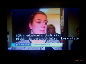 Maaliskuu 2014. SDP hyväksyy neuvottelutuloksen. Jutta Urpilainen kuulee ensimmäisen kerran Ylen toimittajalta, että Vasemmisto ilmoitti hylkäävänsä ...