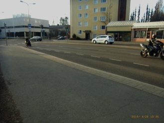 Keski-Suomi. Jyväskylä. Ilmarisenkatu - Aren aukio - Kauppakatu - Kirkkopuiston kioskikahvio - Asemakatu. Kauppakatu. Perjantaina 2009-05-01 klo 11:35-12:47. Kuvat Pertti Manninen.