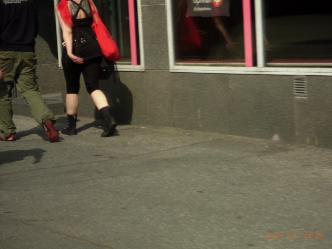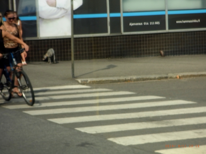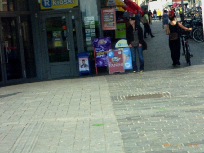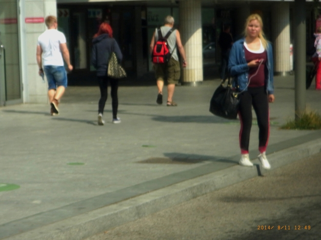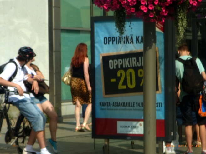 Ihmisiä kaupungissa kesäaikataulun vaihduttua talviaikatauluksi maanantaina 11.08.2014. Sarja 2 klo 12:30 - 13:29.