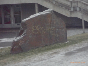 PAASIKIVEN PATSAALLA. Pieni istuva pysähdys patsaan jalustalla ilmaisia Narinkkatorilla jaettuja mainosnakkeja mutustellen hiukan ympäristöä tarkkaillen ja hetken kuluttua Kiasman edestä lähtevän bussin kyytiin kiíruhtaen. |