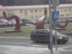 Hirvaskankaan hirvet kierrossa. Keski-Suomi. Äänekoski. Hirvaskangas, 4-tieltä erkanevan 69-tien alussa. Tarkistamatta voi sanoa, että taiteilijan nimi on Kari Alonen. Katso " Poro matkakeskuksen edessä Kari Alosen rautailemana" sarjassa "Vararikosta vararikkoon". Kuva http://www.nettisanomat.com/ 2012/01/16/etusivu.htm Kuva: Pertti Manninen. Tiistai 2013-05-28 12:51. Laajenna! |