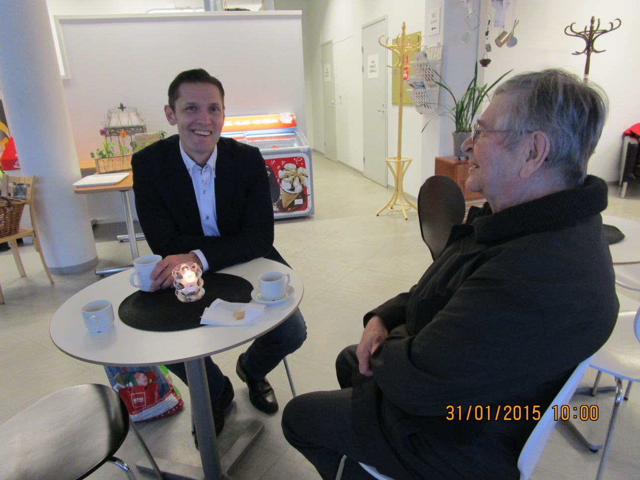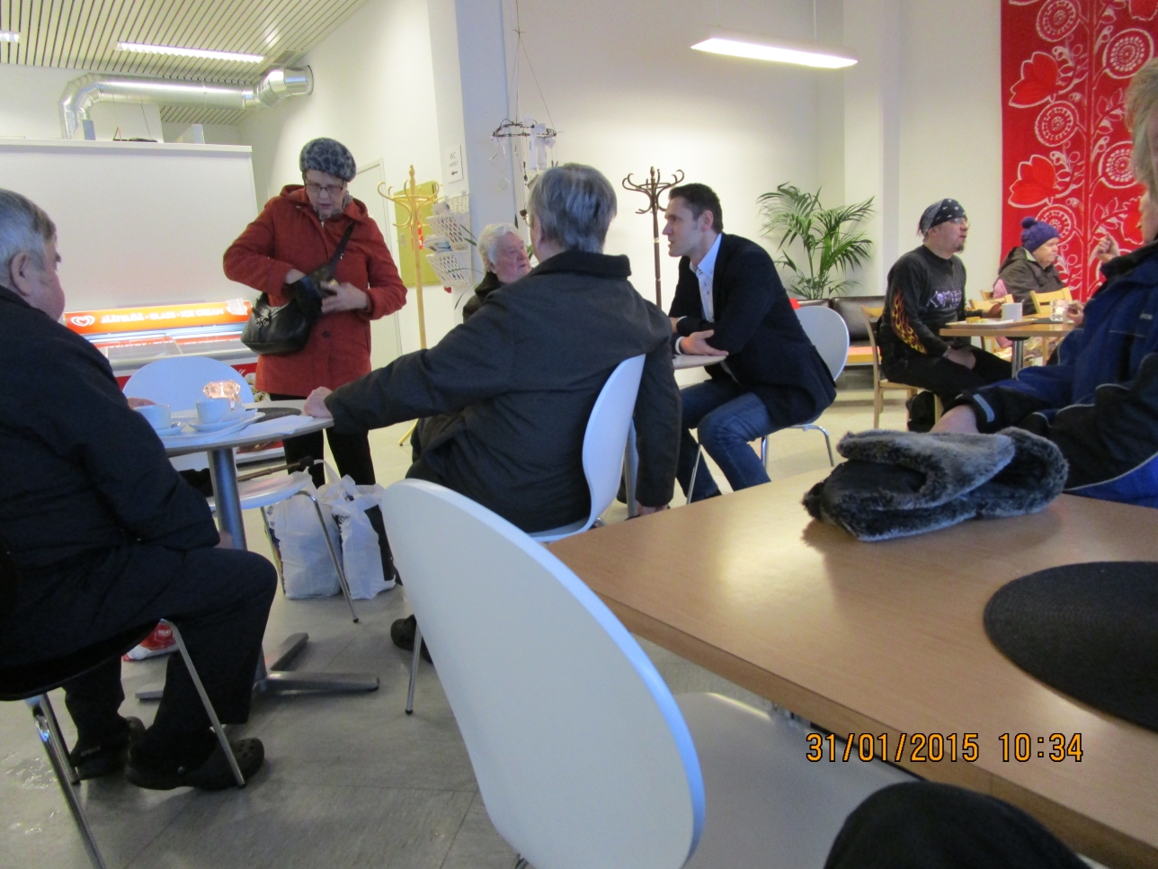 Suojan puolella tarkeni mielellään lähteä kauppareissulle ja poiketa siinä ohella "Sinkun" tarjoamille vaalikahveille. Keskustelun aiheet olivat politiikkaa ja jääkiekkoa ja tietenkin ihan yleistä maailmanmenoa. Nuoremmat vain moikkasivat, vanhemmat puhelivat. Asioita ja henkilöitä käsiteltiin laidasta laitaan, oli hallituspalkkioita ja presidentin valtaoikeuksia, oli Rätyä, Peltosta ja Pekkarista, Nurmista ja jo 80-kymppinen kertoi Kekkosesta ja Sotamaasta juttujaan. SW oli sovitteleva ja myötäili rauhallisesti. "En minä kenenkään kanssa tappele, en Pekkarisenkaan, vaikka välillä tässä kirjoittelimmekin aika tiukasti lehdessä." Jotenkin näin se meni. Vanhempi mies ihmetteli miksi Peurungan uimahallista on viety Kekkosen lausahdus "Kaikki syyt jotka estävät meitä harrastamasta liikuntaa, ovat tekosyitä". Se on siellä jossakin rullalla, mutta paikkaa ei ole löytynyt. Sitten oli kiiruhdettava Muurameen ja avustaja oli jo käärimässä kokovartalokuvaa rullalle, kun onnistuin saamaan kansanedustajan kuvansa viereen potrettiin. Muut kuvathan ovat melkein aitoja. Linkki: http://www.sinuhewallinheimo.fi Kuvat: Aamukuulumiset - Yhdistetty kauppa- ja lapsen sekä koiran ulkoiluttamisreissu - Laukaan Herkkukondis-kahvila jo odottaa - Kansanedustaja ja ensimmäinen vieras (hiukan potretti) - Välillä naurattaa - Tulossa ja menossa - Punatakkinen nainen kiiruhtaa linja-autolle - SW-potretti - Avustaja rullaa Wallinheimon - Peurunka-Rallin tauolla kuljettaja käy Ale-Makasiinissa - Koirien kohtaamimen. Kuvat: Pertti Manninen. Keski-Suomi. Laukaa Keskusta. Lauantai 2015-01-31 09:54 - 11:41. ISONNA! |