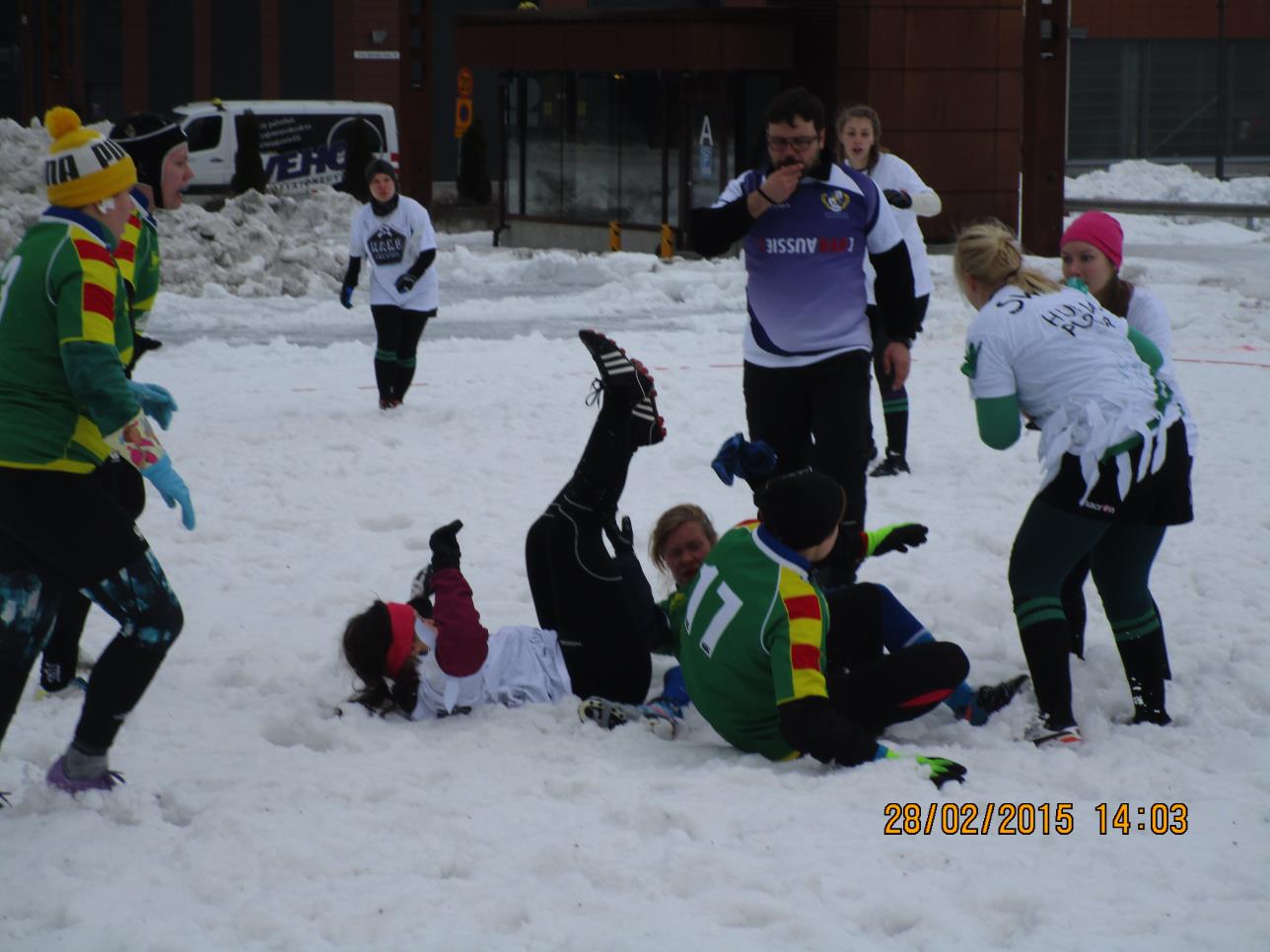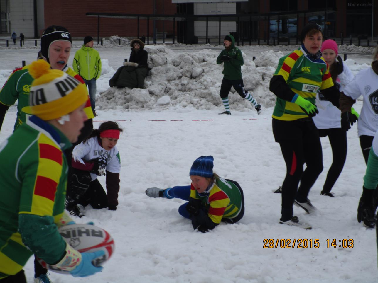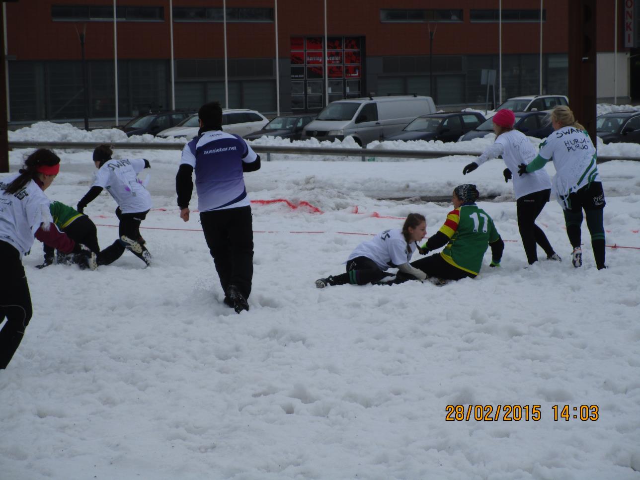 HELMIKUU 2015. SNOW RUGBY JYVÄSKYLÄN LUTAKOSSA LAUANTAINA 28.02.2015. SARJA 1. 60 KUVAA.