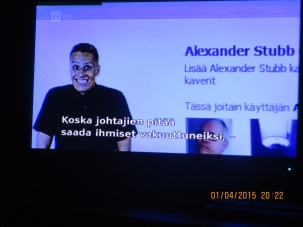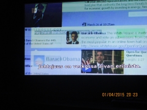 2015, HUHTIKUU 2015, KUVAT, 01.04.2015, SUOMI KUNTOON , JOONAS KÖNTTÄ , ONNI HAAPALA , JAN-HENRIK MERIHONKA , PIRAATTIPUOLUE , SUOMI KUNTOON, HIHAT KÄÄRIEN , KORJAUSPORUKKA , OMALLA RAHALLA TULEVAISUUTEEN , Johtajuus, poliittinen johtajuus, media, netti, Isabella Holm, koordinator, Sällskapet, mediefostran, Barack Obama, johtaja, mielipidejohtaja, lapsi, Johtajuus, netissä, hierarkia, yritysjohto, Internet, ekosysteemi, ihmiset. media, perhe, oma, mediakulttuuri, idoli, raja, valita, vapaasti, ketä, seurata. vääristyy, perinteisilläkin, paikka, sosiaalisiin medioihin, Facebook, Twitter, Instagram, kampanja, käyttäytyy, verkkoympäristö, julistaa, vuorovaikutus, alttiina, arvostelu, tarkoitat, kumoontuminen perinteinen johtaja, oma lapsi, suosittu, videoblogi ,pelaa, pärjää, klaaneja, joukkueita, vanhemmat, tajua, harjoittaa, johtajuutta, mediaympäristöissä, ympäristö, käyttää valtaa, harrastuksesta, keskustelufoorumista, ulkomaailmalle, näkymättömäksi, reagoida, nopeasti, tieto, uskottavuuskriisi, Kevään vaalien, ehdokkaat, kampanjapäällikkö, kanava, Tviittaus, muutos, Viestintäosasto, lehdistötiedotteet, valmennustehtäviin, asiantuntijoitaan, välittävät, sanomaa, ammattitaito, oppii, paneutua, yleisö, missä vedessä ui, uskottava,vaikuttamaan, äänestäjiin, |