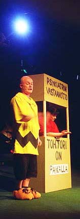0!) Stiller: Yksityistetään koko kaupunki. Kettunen ralliradan takapiruna. Sippulanniemi aidataan golffareille Arsenalin outoa kiinteistöjalostusta entisessä Suomen pankin talossa. Oikaisu: Säästöpankin talossa! Lipposen ja Niinistön salainen sopimus. Sundqvist- näytelmä loppui kesken! Kettunen: Lisäpanostusta avainkehittämiseen. Jaska Jokunen. Psykiatrin vastaanotto. Tohtori on paikalla. Kuva Pertti Manninen. 28.07.1999 |