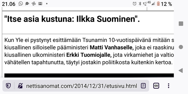 voittaa aina". http://www.nettisanomat.com/2020/02/29/etusivu.html# Torstaina 6.4.2023. Kiirastorstaina. AKU ANKAN TASKUKIRJA 523 - AKU ANKAN TASKUKIRJA 522 - VAAROJEN VIIDAKKO SUOMEN SUURIN UUTISMEDIA - Kiirastorstain lukupaketti! - ILTA-SANOMAT - PERUSTETTU 1932 - KIIRASTORSTAIN LUKUPAKETTI - 100 kysymyksen jättivisa, lisäristikot, tv-ohjelmat... - MYYNNISSÄ 6.-7.4.2023 HINTA 3,20 - ILTALEHTI - AKU ANKAN TASKUKIRJA 523 YÖLINTU - Myynnissä 6-7.4.2023 3,20 - Laihtui 30 kg - Sanna Marinin luopumisen taustat: YLLÄTYS JOPA PUOLUE- TOVEREILLE - Venäjältä paennut alainen paljastaa: - VAAROJEN VIIDAKKO - RAJU SAIRAUS ISKI Pekka Vennamo menetti liikuntakykynsä - PARHAAT VINKIT KÄYTETYN AUTON MYYNTIIN - TÄLLAISTA ON PUTININ SALATTU ELÄMÄ - Pippa Laukka jätti työnsä Nyt on aikaa laiskottelulle. - Jätti-ristikko, voita 1000 e! - AKU ANKAN TASKUKIRJA 522 VAAROJEN VIIDAKKO - 40 SIVUN MÖKKIEXTRA - Tuttujen suomalaisten kesämökit Tällaisen mökin saat 100 000 ja 200 000 eurolla - Ihanat parsareseptit - Lotta Hintsa: ERO JA - Uskomaton selviytymistarina - TERVEYSHUOLET - HELMI-VAUVA PAINOI VAIN.. 545 GRAMMAA - PAKOTTIVAT PYSÄHTYMÄÄN - LIDL - KIIRASTORSTAIN LUKUPAKETTI! Jätti- ristikko, voita 1000 e! Sanna Marinin luopumisen taustat: ILTA-SANOMAT - YLLÄTYS JOPA PUOLUE- TOVEREILLE "Kestokykyni on ollut koetuksella - KIIRASTORSTAIN LUKUPAKETTI - Venäjältä paennut alainen paljastaa: TÄLLAISTA ON PUTININ SALATTU ELÄMÄ - 40 SIVUN MÖKKIEXTRA - Tulot romahtavat yll 50 prosenttia - Tutut meteorologit vinkkaavat: Tuttujen suomalaiston kesämökit Tällaisen mökin saat 100 000 ja 200 000 eurolla - Ihanat parsareseptit - SANNA MARININ TUNTEIKAS RATKAISU - NÄIN KESÄLOMAT KANNATTAA AJOITTAA - MUISTA MYÖS Muisti - OSTA MYÖS TV-LEHDEN PÄÄSIÄISTUPLA - ILTALEHTI - RAJU SAIRAUS ISKI Pekka Vennamo menetti LAIHTUI 30 KG lliikuntakykynsä - |