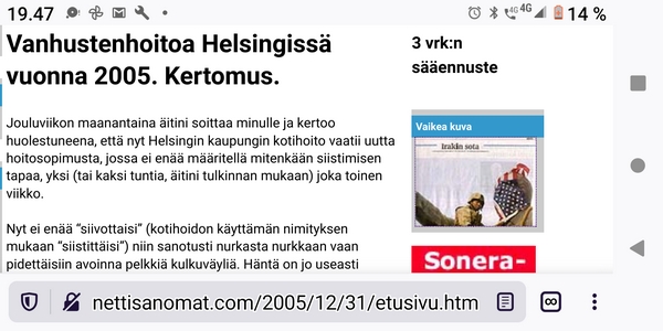 Torstai 19.1.2023. "Massiivisia protesteja Irakin sotaa vastaan." http://www.nettisanomat.com/ (Kuvat isonnettu 19.1.2023) |