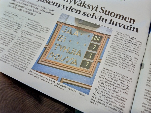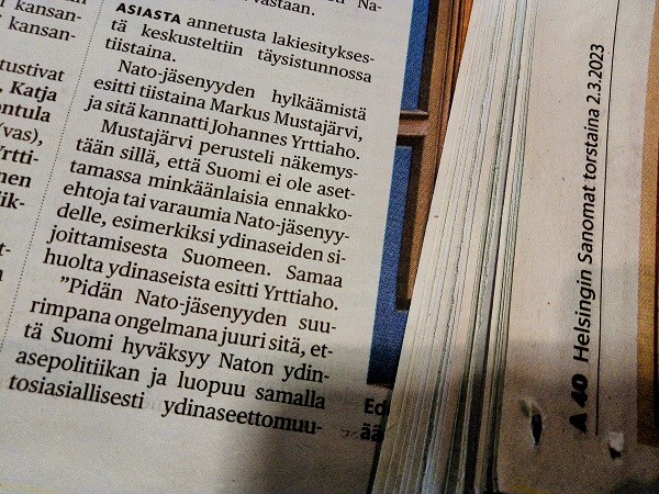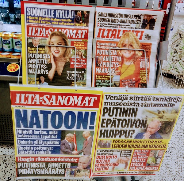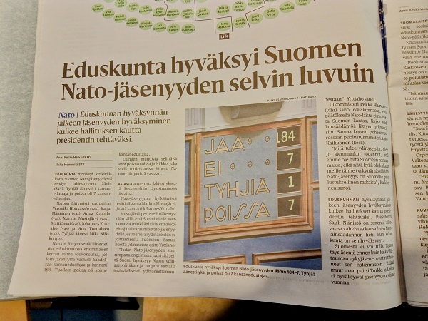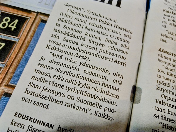 Pääkirjoitus: Ukrainan verinen tie Natoon. Venäjän julma ja verinen hyökkäys naapurimaahansa Ukrainaan jatkuu ja jatkuu. Nyt on menossa jo 168. päivä. Media käyttää tästä sodasta nimitystä "Ukrainan sota". Pikemminkin pitäisi käyttää nimitystä "Venäjän sota". Mitään rauhanneuvotteluja ei vielä käydä. Nato-maat ja Natoon
