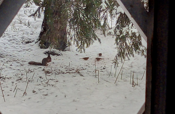 SYYSKUU 2016. ORAVA TAMMESSA. Kuva: Pertti Manninen. Kirkkonummi Kauhala maanantaina 19-09-2016 illansuussa 18:06 ikkunan toisella puolen. |