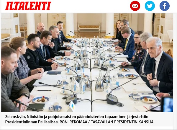 Torstaina 4.5.2023. Iltalehti keskiviikkona 3.5.2023. Zelenskyin, Niinistön ja pohjoismaisten pääministerien tapaaminen järjestettiin Presidentinlinnan Peilisalissa. Roni Rekomaa/Tasavallan presidentin kanslia. Lue myös! Nettisanomat torstaina 4.5.2023 20:36. |