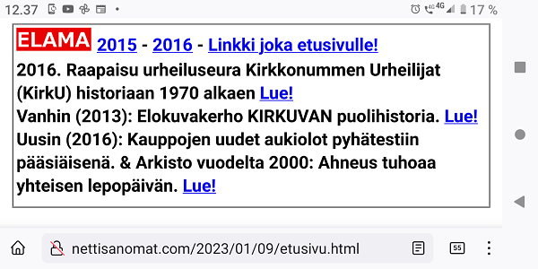 1.1.2023- 12.1.2023 | Jokaiselle etusivulle: Nettisanomat.com vuodesta 1999 |