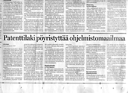 sunnuntaina 25.07.2004: Patenttilaki pöyristyttää ohjelmistoalan