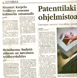 Patenttilaki. Lue mitä kolme lehteä kirjoittaa. Keskisuomalainen sunnuntaina