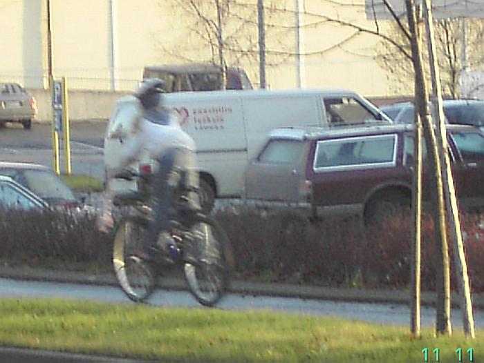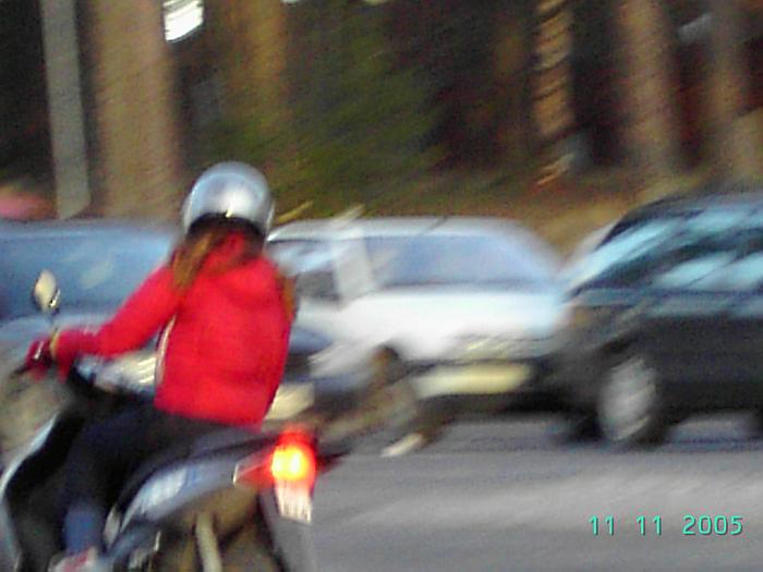Kuva 11.11.2005 marraskuun perjantaina klo 14:24.  "Vapaus ja tasa-arvo lämpöisessä marraskuussa vuonna 2005 jolloin kylmä ja jää ei vielä ole vanginnut kulkijaansa." Kuva  Pertti Manninen. Laukaa. Sarjasta "Koululaisia", tulossa!  Edellinen ensimmäinen kuva!   Alempana: Toinen kuva.  Katso myös!  "Liehuvatukkainen mopotyttö"."Mopotytöt" &  "Mopopappa eli pappamopon uusi tuleminen".