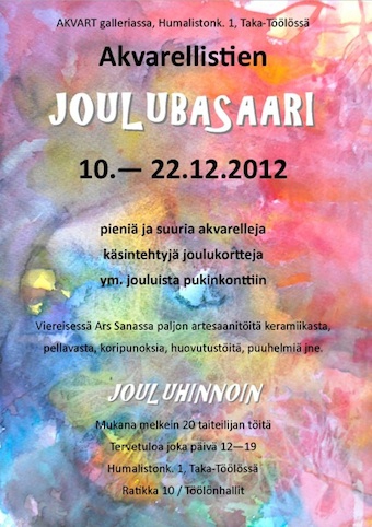 AKVART GALLERIA JA ARS SANA AVAAVAT OVENSA JOULULLE!10 -22.12.2012, AVOINNA JOKA PÄIVÄ 12-19, HUMALISTONKATU 1TERVETULOA AKVARELLISTIEN JOULUBASAARIIN LAHJAOSTOKSILLE: