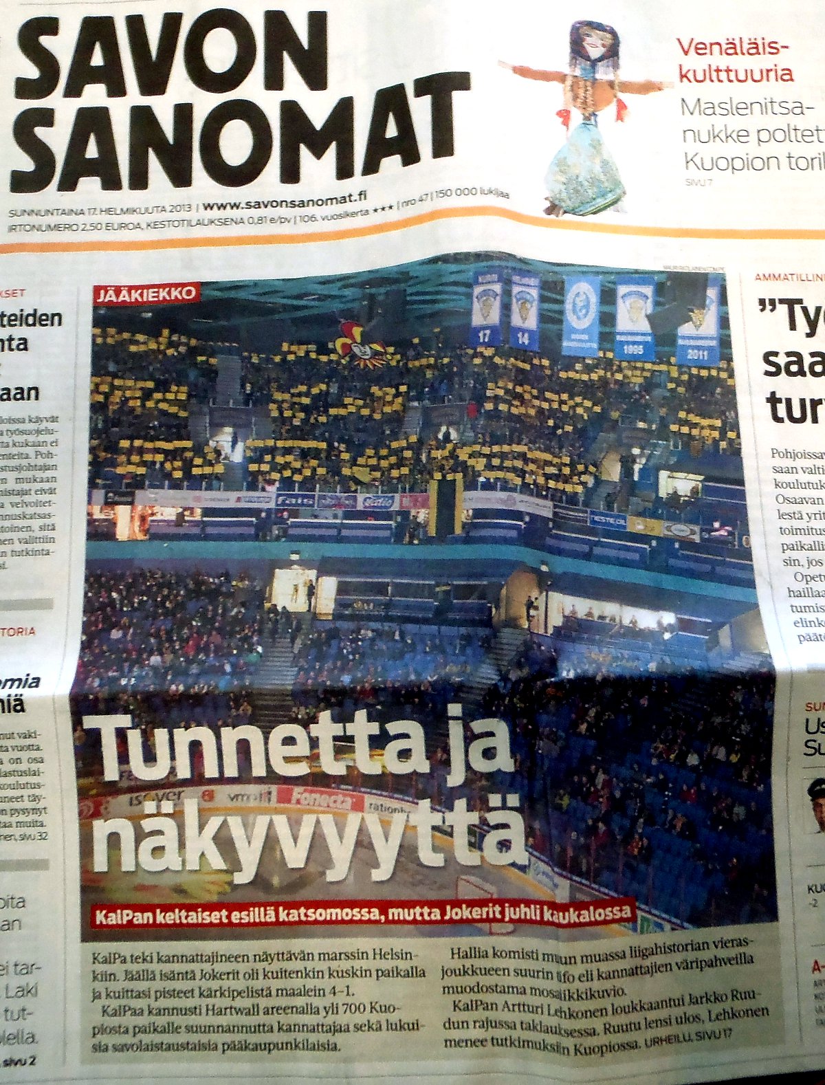 Savon Sanomat maanantaina 18.02.2013. Kuva: Pertti Manninen. |