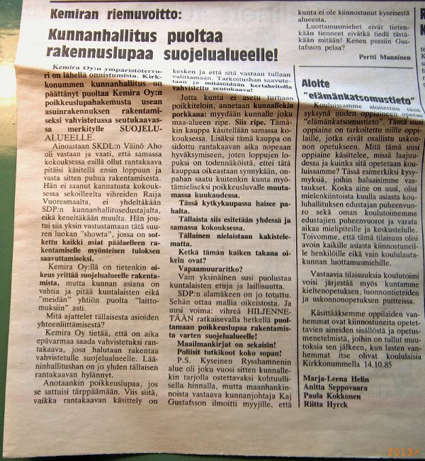 Kuntalainen 22.10.1985Kemiran riemuvoitto: