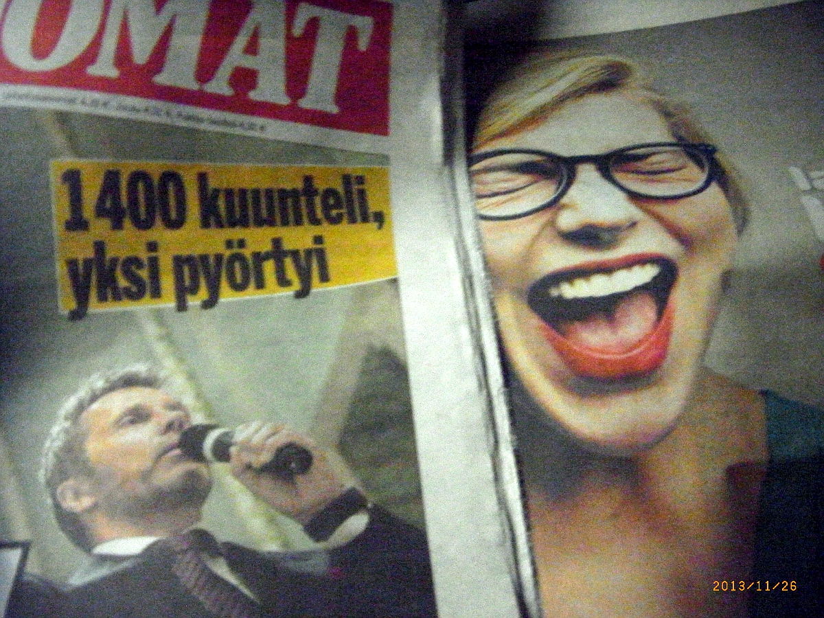 Viikkosanomat-blogi marraskuussa 2013:marraskuu 6, 2013 Iltalehti ja tapaus Rastimo. Jatkokäsittelyn evääminen hovioikeudessa ei ole vielä jutun lopullinen ratkaisu, välttämättä. Korkeimpaan oikeuteen voi vielä yrittää viedä asian käsittelyn.http://viikkosanomat.fi/2013/11/06/iltalehti marraskuu 8, 2013 Kalervo Kummola: Lukashenko lupasi, ettei kisojen aikana löydy toimittajien irrallisia päitä.http://viikkosanomat.fi/2013/11/08/kalervo marraskuu 8, 2013 Pölhö-populismia. Himasen julkaisu tuomitaan humpuukiksi sitä lukematta. Pentti Oinonen (ps).http://viikkosanomat.fi/2013/11/08/polho Iltalehti: Syyttäjä vaatii tappotuomiota mustasukkaisuusveriteossa.http://viikkosanomat.fi/2013/11/16/iltalehti Ahde ja Ailus. Naiset ahdingossa. Raatelu jatkuu.http://viikkosanomat.fi/2013/11/19/ahde-ja Iltalehti: Nokian Microsoft-kauppa muuttui väkivaltaiseksi.http://viikkosanomat.fi/2013/11/21/iltalehti Markku Huusko: ”Joku on tiennyt paljon toimitusjohtaja Ailuksen tekemisistä.”http://viikkosanomat.fi/2013/11/21/markku Jyrki Virolainen: Potkujen aikaa. Blogista valittu Mikko Paatero.http://viikkosanomat.fi/2013/11/21/jyrki Immonen erotettiin. Tuntevatko Esko Aho ja Matti Louekoski mitään pistoa sydämissään?http://viikkosanomat.fi/2013/11/21/immonen LAINAUS: Jirka Hakala: Keva, Ailus ja älyllinen epärehellisyys. (Koko puheenvuoro Uudessa Suomessa).http://viikkosanomat.fi/2013/11/21/lainaus Laura Räty puhui soopaa Ailus-erossa. Ei eroraha ollut sopimuksen mukainen kuin korkeintaan summaltaan.http://viikkosanomat.fi/2013/11/22/laura Huvittava Sampsa Kataja: ”Määrä, jota me pidämme kohtuullisena”. Ikäänkuin Laura Rädyn johtama hallitus ei olisi tehnyt tätä Ailus-sopimusta, siis uutta sopimusta!http://viikkosanomat.fi/2013/11/24/huvittava Laura Räty jäi niukasti kansanedustajan paikasta 2011. Korvaukseksi kokoomuksen paikalle Helsingin kaupunginjohtajistoon. |