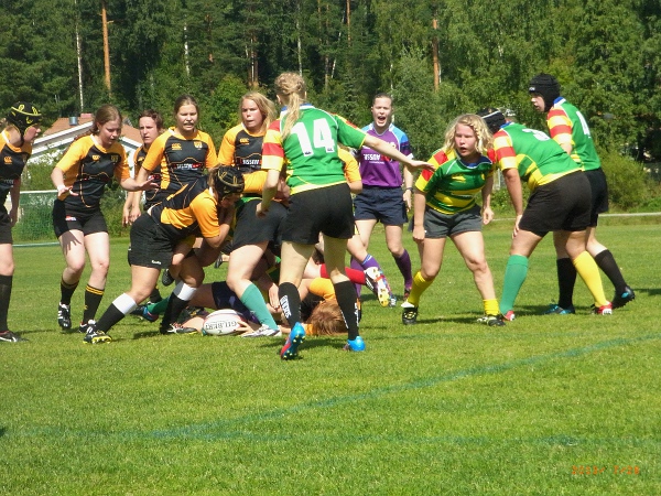 Jyväskylä Rugby Club Ladies Suomen mestari. Helsingin Warriors hävisi tiukan väännön 10 - 5 Töölön kentällä Helsingissä tänään lauantaina 05.10.2013. Kesän kuva |