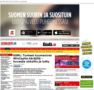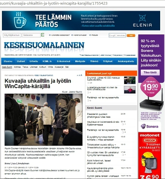 Viidellätoista sivustolla: WinCapita- käräjät: Valokuvaajia uhkailtiin ja lyötiin Keski-Suomen käräjillä Jyväskylässä. Sivukuvat Talvipyöräilyä Kuva - Anteeksianto Lue! Kauppi: Lainakaton vaikutus Lue! - 2002 Pankit eivät ota riskejä asuntolainoissa Lue! | ![]() |
