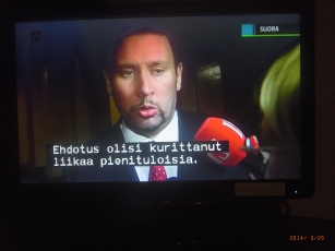 Maaliskuu 2014. "Ehdotus olisi kurittanut liikaa pienituloisia". Paavo Arhinmäki ensimmäisessä haastattelussaan Säätytalon raput laskettuaan, alas. LIVE. 24 kuvaa.