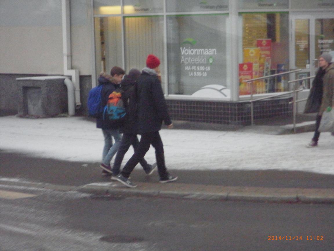 Ihmisiä kaupungissa perjantaina 14.11.2014. Kuvasarja Vapaudenkadulta Voionmaankadulle lumisen talven yrittäessä tehdä tuloaan. Jyväskylä. Asemakatu - Vapaudenkatu - Cygnaeuksenkatu - Voionmaankatu - Vesangantie perjantaina 14.11-2014 klo 09:49 - 10:05. (Kuvien kello elää vielä talviaikaa!). Raw-kuvat: Pertti Manninen. Isonna! |