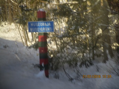 Sitten bussin omakuvavarjo ja taas uudestaan se sama Museoraja-Museigräns-paalu.