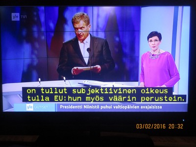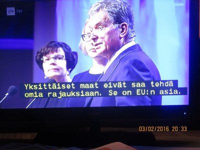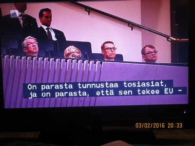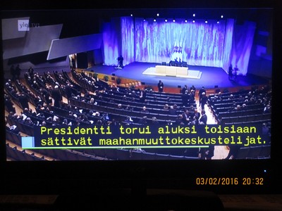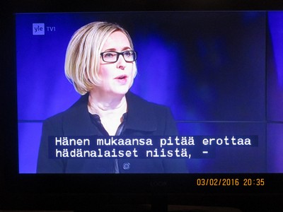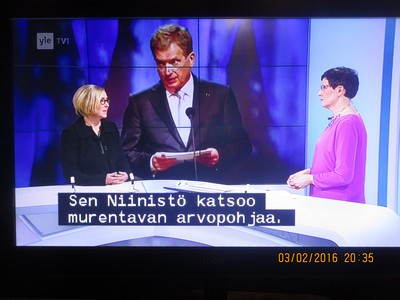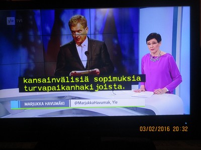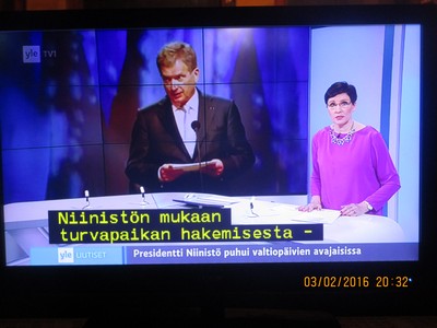 Kuvat keskiviikkona 2016-02-03 Yle 20:30 alkaneesta uutislähetyksestä.